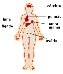 Pode-se desenvolver um tumor secundário próximo do local inicial, no tecido da mama ainda não atingido ou na cicatriz da mastectomia, onde a mama foi retirada. Isto é conhecido como recidiva local. As células cancerosas transportadas na corrente sanguínea alojam-se com mais frequência nos ossos, no fígado ou nos pulmões e, ocasionalmente, atingem o cérebro. As células transportadas na linfa instalam-se nos gânglios linfáticos nas axilas. No entanto, em geral, o cancro não ataca todos estes locais simultaneamente.